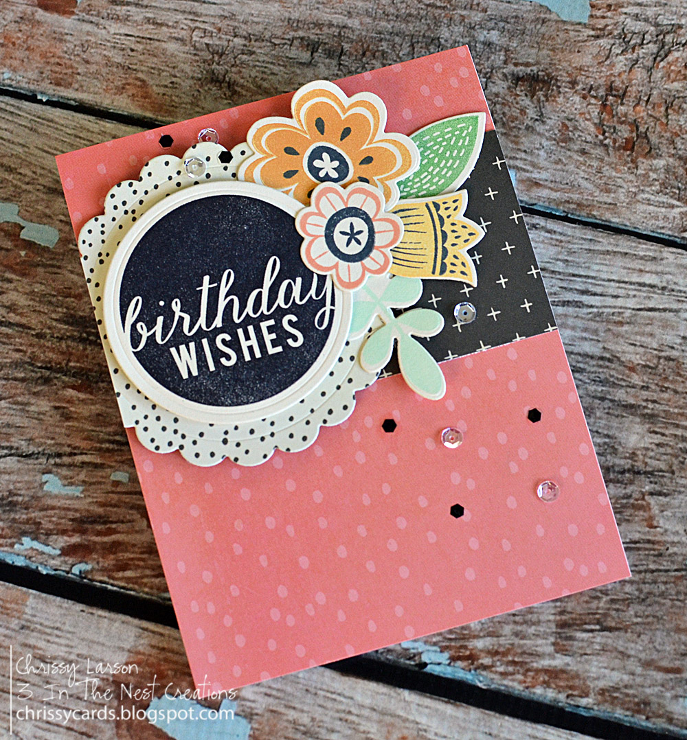 So, I stretched the sketch a bit this time around. I know, I know! I flipped it, I added an extra shape or two but I can't deny that this card was inspired by the sketch and that's all that matters, right? This card is packed with goodies from Reverse Confetti. I layered all of these gorgeous flowers from Blooms 'N Buds with some cuts from Circles 'n Scallops and stamped with Roundabout Additions. I just love the finished look and while it got a little less CAS than I intended, I couldn't help sharing it.