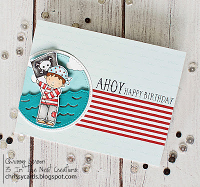 ReplyDeleteGreat take on the sketch, Chrissy! Love that little pirate and how you paired the striped paper with him!